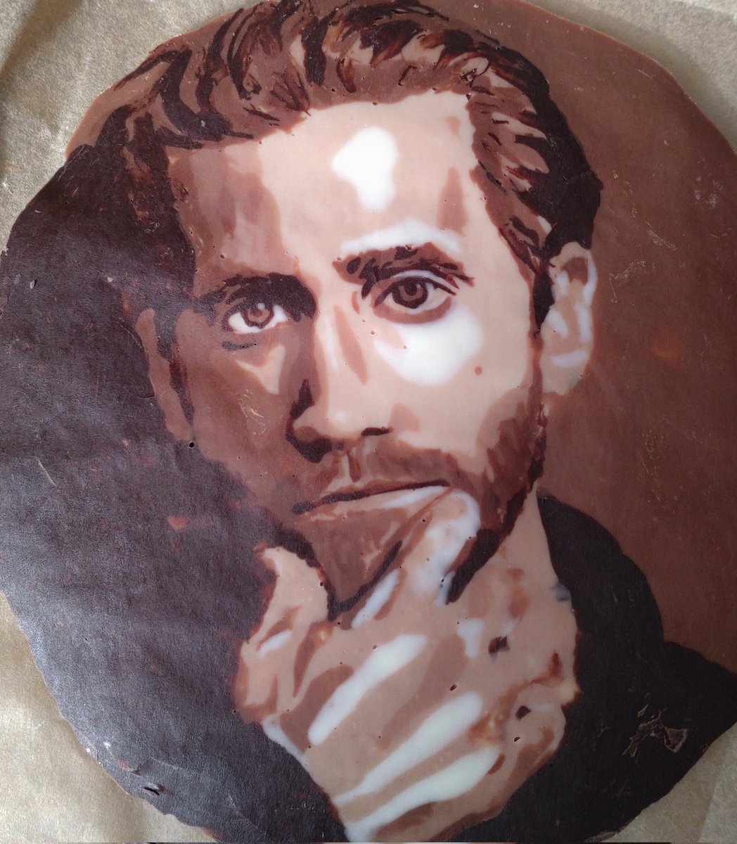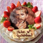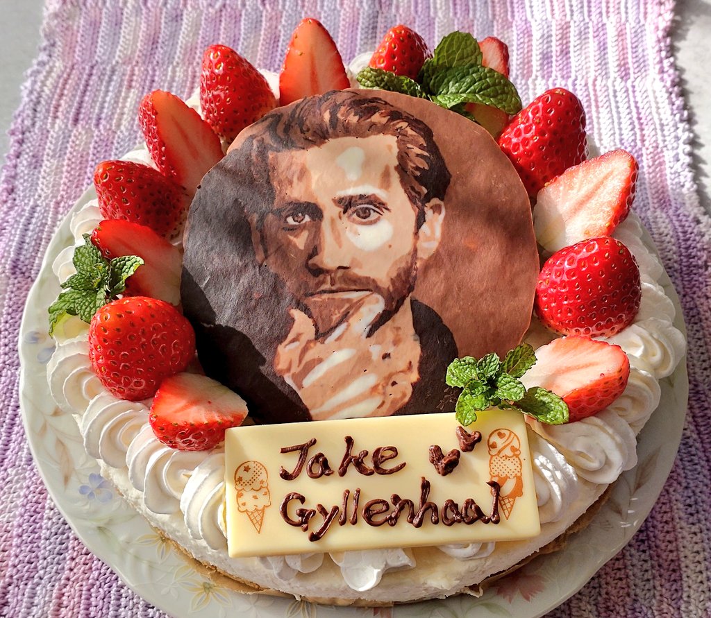ジェイクー!お誕生日おめでとうございます👏🎊🎁💕 今年もケーキ作ってお祝いです!!(顔はチョコレートで描きました🍫) #JakeGyllenhaal #happybirthdayJakeGyllenhaal