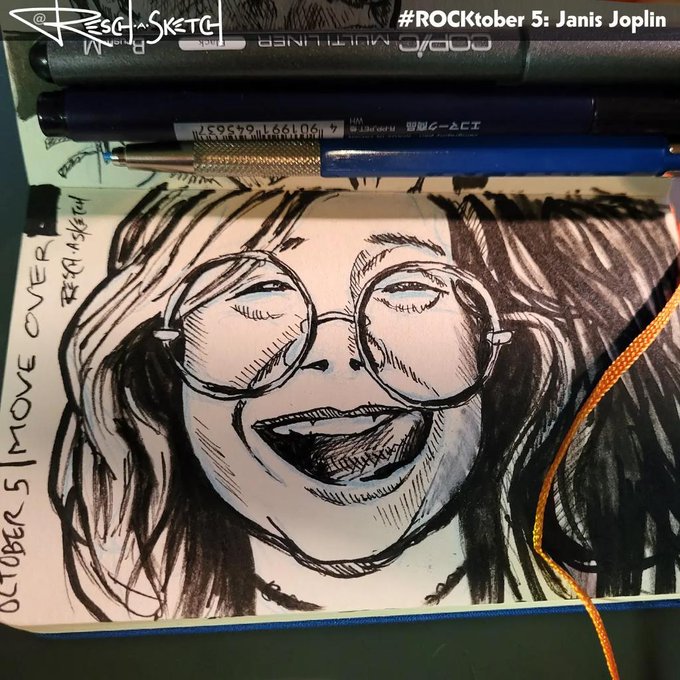 #ROCKtober day 5: Janis Joplin, the Pearl of Texas. !! Swipe right every day for a related trivia question !! #inktober #inktober2021 #janisjoplin