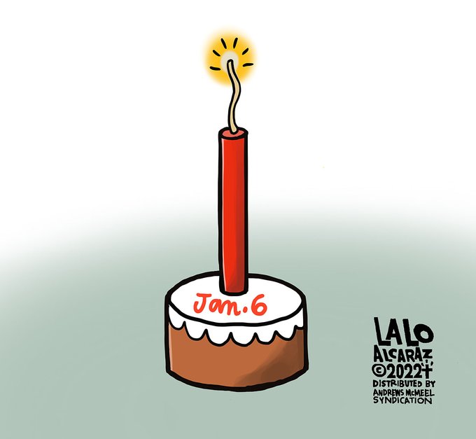 Happy? One Year Anniversary cake #January6 #Insurrection Please share #laloalcaraz cartoons and get your 2022 Cartoon Calendar laloalcaraz.com/2022-calendar/