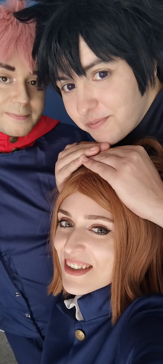 Last year we went to #japanweekend 🙏 Yuuji @vanyAkun Nobara @Naru_Mayuu 1/2📸 by Alex Kie c: #jujutsukaisen #jujutsukaisencosplay #jjk #japanweekendmadrid #GojoSatoru #nobarakugisaki #itadoriyuji