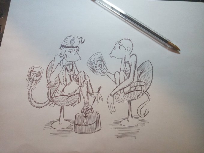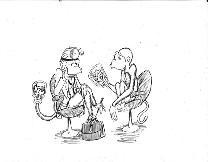 Inktober 2021 day 12: stuck (2/2) #inktober #inktober2021 #stuck #traditionalart #illustration #blackandwhite #sketch #cartoon #monkey #jar #joke