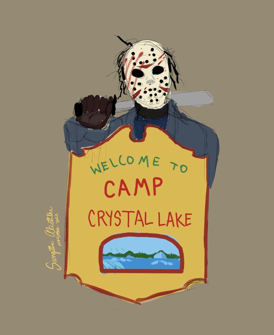 Inktober 2022 D28: Camping He'll get you tucked right in. #inktober #inktoberchallenge #inktober2022 #jason #campcrystallake #DigitalArtist #artwork #Artists