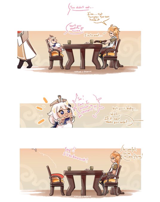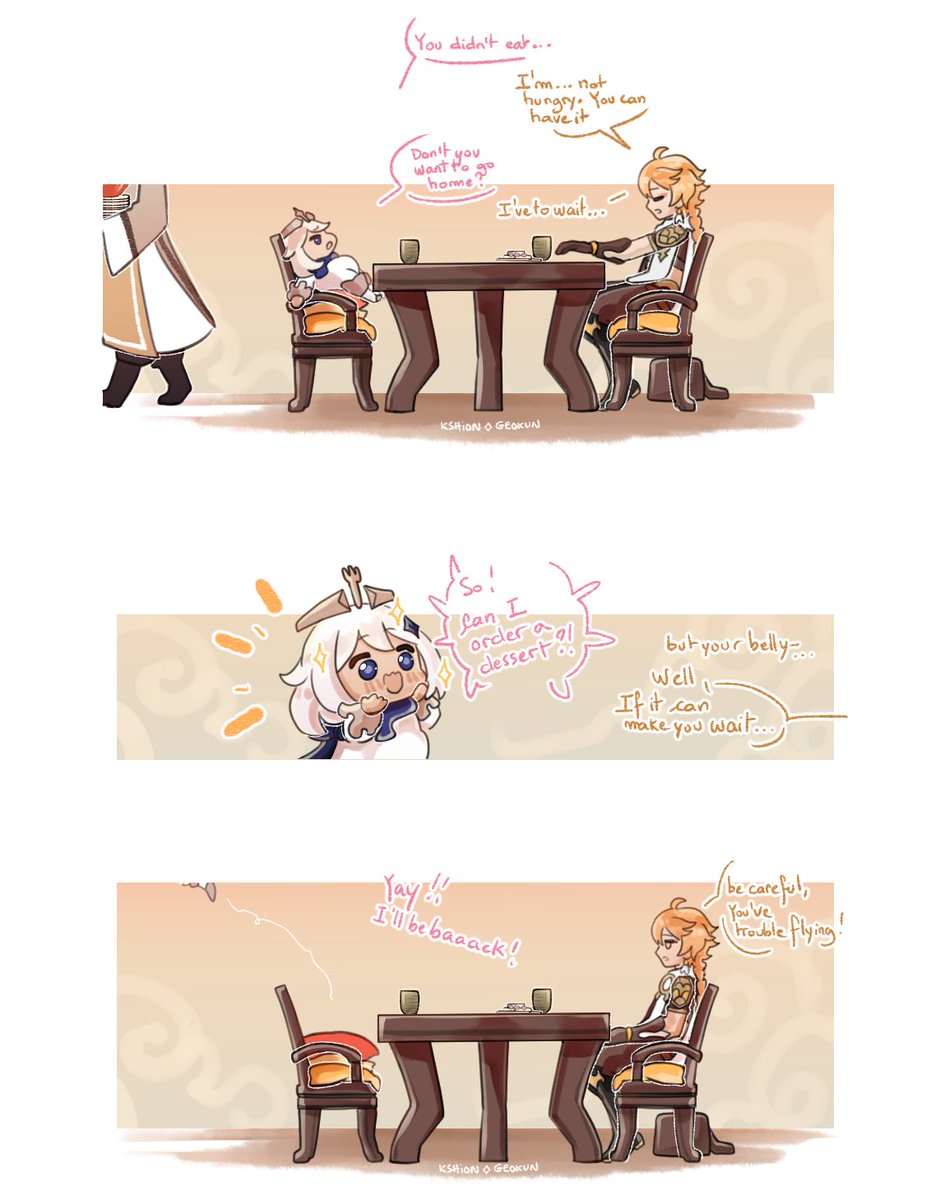 Meeting [2/3] Still waiting for someone |´∀`●) [To be continued] #genshinimpactfanart #Aether #Paimon #jeangenshinimpact #Xingqiu