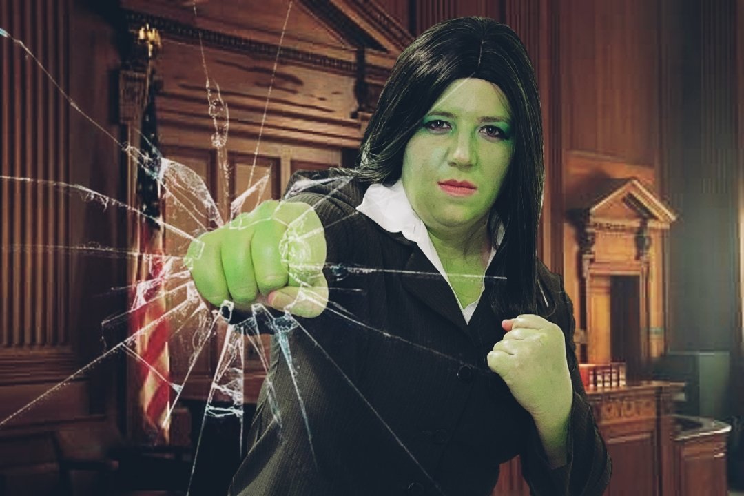 #tbt #throwbackthursday to when my #LawyerJen faced off in court against… who? What attorney might be feeling her #Hulk anger in the courtroom? Tell me in the comments! #shehulk #shehulkcosplay #marvel #marvelcomics #marvelcosplay #marvelcomicscosplay #jenniferwalters #cosplay