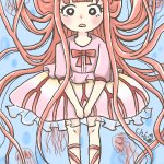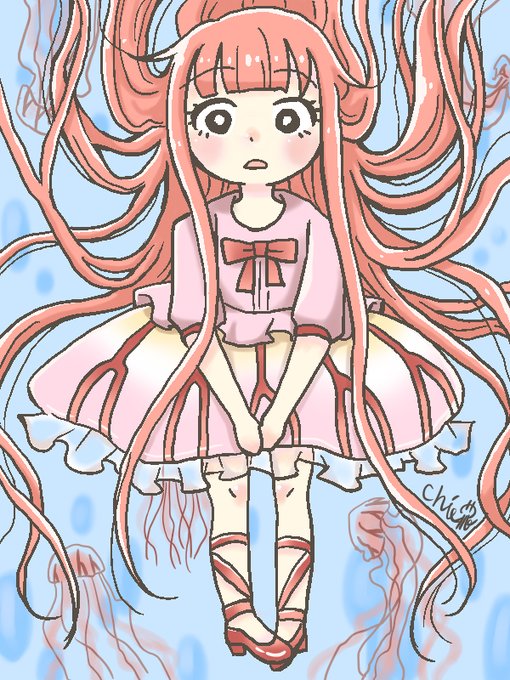 『アカクラゲ』 猛毒を持っていながら赤く伸びる触手は髪のように絡み合い舞う様子が上品なお嬢様のようなクラゲ。 #イラスト #オリジナル #アカクラゲ #illustration #Original #Jerryfish