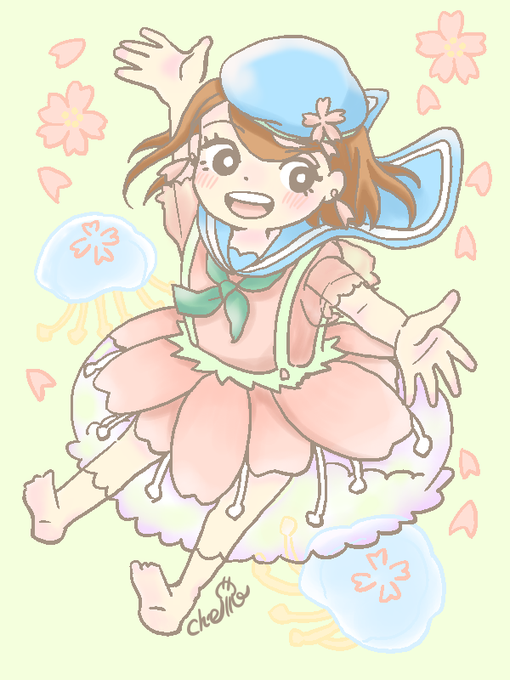 『サクラクラゲ』 桜が咲く時期になるとひらひらと見かけることがあるとかないとか言われてる期間限定クラゲ。 *オリジナルキャラクターなため、サクラクラゲというのは実在しません。 #お絵描き好きさんと繋がりたい #イラスト #オリジナル #illustration #Original #Jerryfish