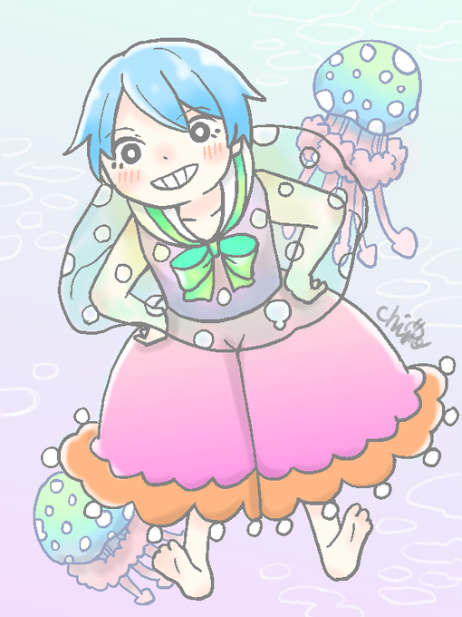 『コティロリーザ・ツベル・クラータ』 #イラスト #オリジナル #女の子 #クラゲ #擬人化 #Jerryfish #illustration #Original #オリジナルキャラクター pixiv.net/artworks/10740…