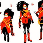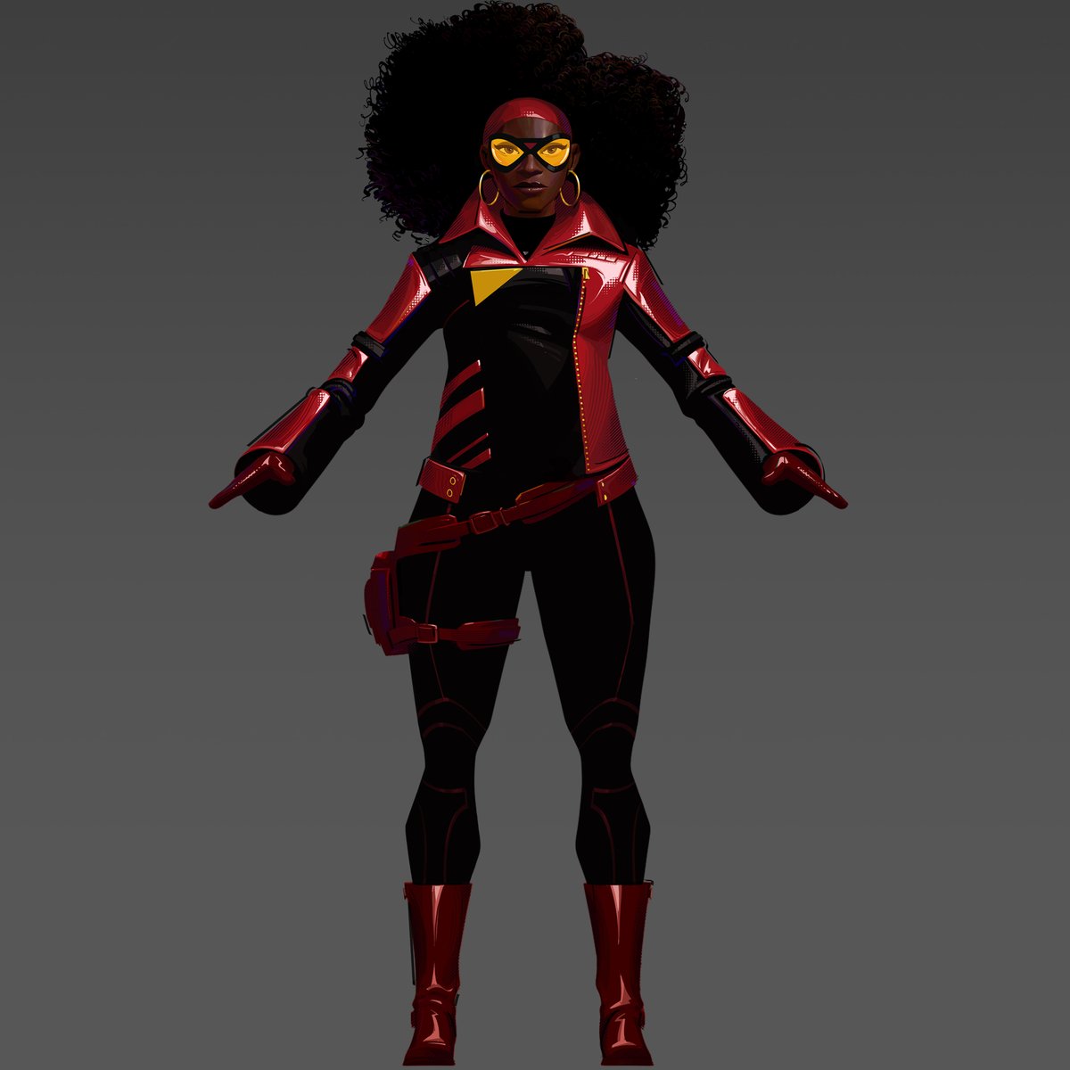 Jessica Drew. This character paint was earlier in production, more in line with Miles' dot/hatch style. Her render-script would evolve beautifully (with the film), heavily influenced by @stelfreeze and his amazing paint style. #acrossthespiderverse #jessicadrew #spiderwoman