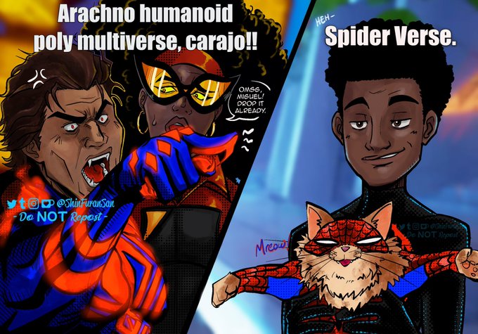 [ #AcrossTheSpiderVerse ; #MiguelOHara ; #JessicaDrew ; jessmiguel ] they always do this but it makes layla smile every time 🥹🫶🏾