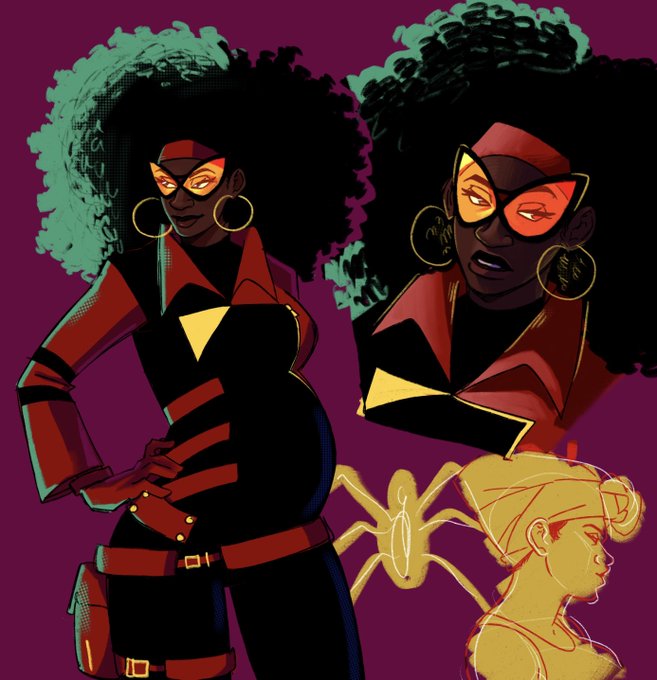 My name’s #JessicaDrew but you can call me Spider-Woman I wasn’t supposed to show up today but that’s what multiverse comes with And yes,I’m pregnant Sharp-eyed! Face/body& hair were ready so this assignment became more an exercise of fashion&graphic design than any other thing
