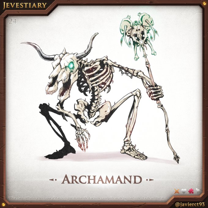 #Jevestiary 24 - Archamand Otro bicho que tampoco podría faltar en mi bestiario era el monstruo esquelético, al que si le damos el plus de un rollo chamán de magia negra pues como que suma puntos. #DigitalArt #Inktober #inktober2022