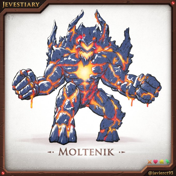 #Jevestiary 17 - Moltenik ¡Cómo no iba a tener mi bestiario personal un tremendo golem que escupa lava y reparta tortas al estilo de Bud Spencer! #DigitalArt #Inktober #inktober2022