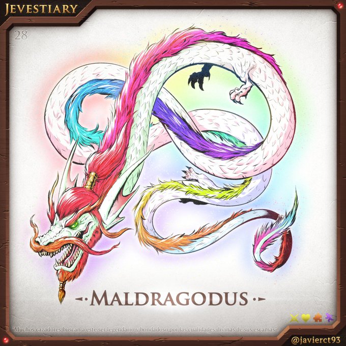 #Jevestiary 28 - Maldragodus Era hora de dibujar al último ser benévolo del bestiario, por ello busqué algo que asemeje a un dragón asiático y con aspecto bello y sabio. Ahora ya se viene lo chungo. #DigitalArt #Inktober #inktober2022