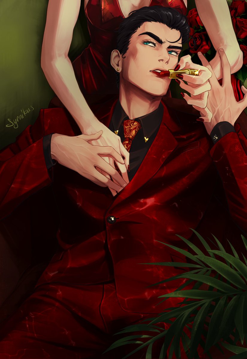 HAVEN'T POSTED THIS ART YET??? Happy belated Valentine's Day lol!!! This artwork took me like, 11 hours, surprisingly procreate didn't have much issues! #ocxcanon #jjbaOC #jjba #originalcharacter #Procreate #procreateart