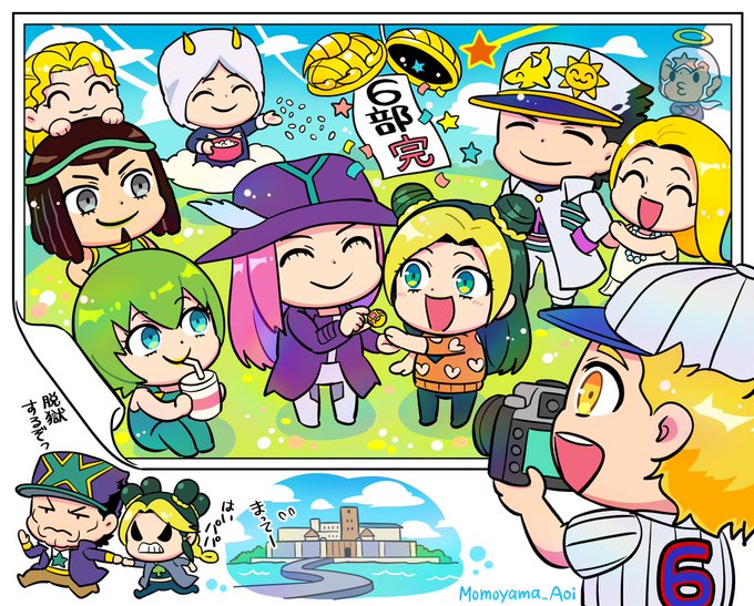〈ジョジョ6部〉 ストーンオーシャン アニメ完結おめでとうございます🎉🎊アナキスとアイリンの結婚を祝福する両親や友人達です。 (ついでに脱獄するニセ徐倫達も) #jojo_anime #StoneOcean