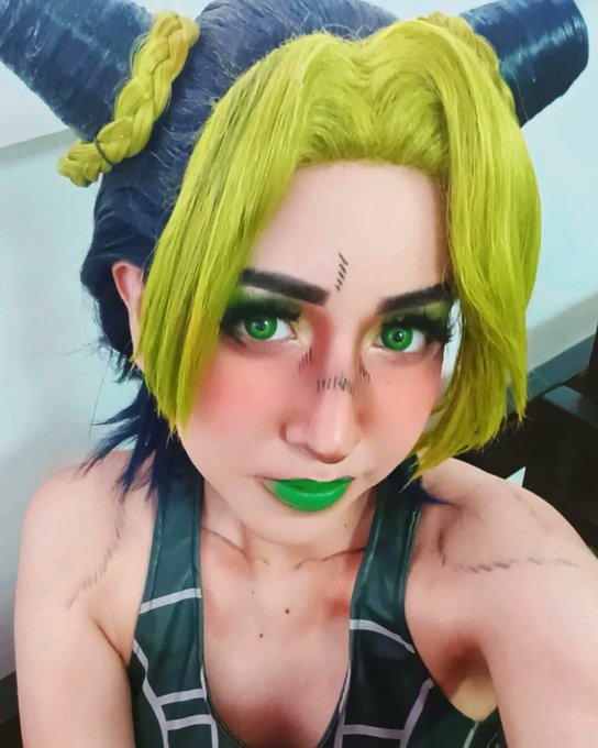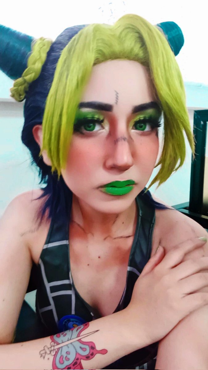 💚🦋 Les dejó estás selfies que me saqué hace unas semanas atrás la última vez que me puse este Cos. ¿Me ayudas con tu RT? Para que siga creciendo mi trabajo 🙏 #jolynekujo #jolynekujocosplay #cosplay #jojoscosplay