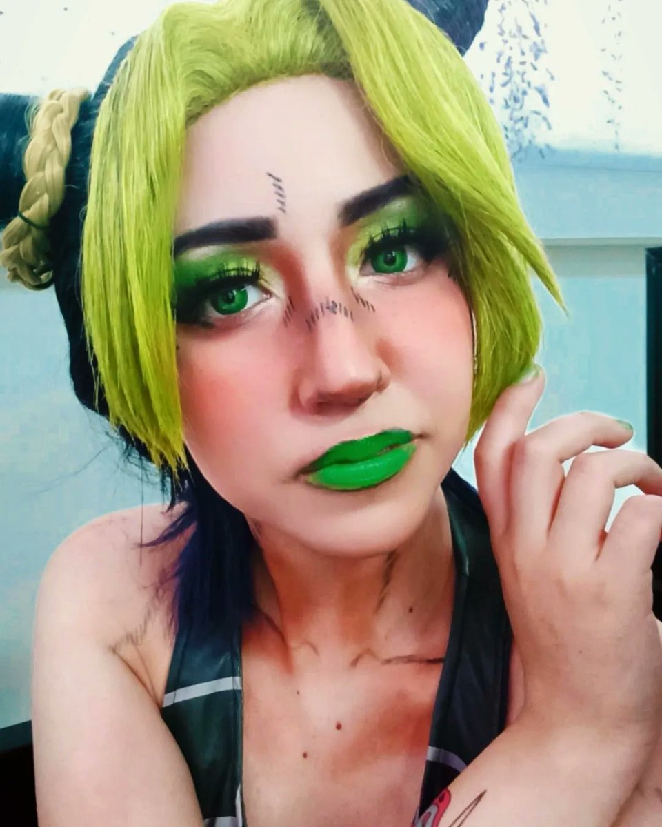 Felt so good to cosplay again, especially as best girl! I’m already thinking of what color scheme to do next ✨💚🦋💚✨#animenyc #jolynekujo #jolynekujocosplay #stoneocean