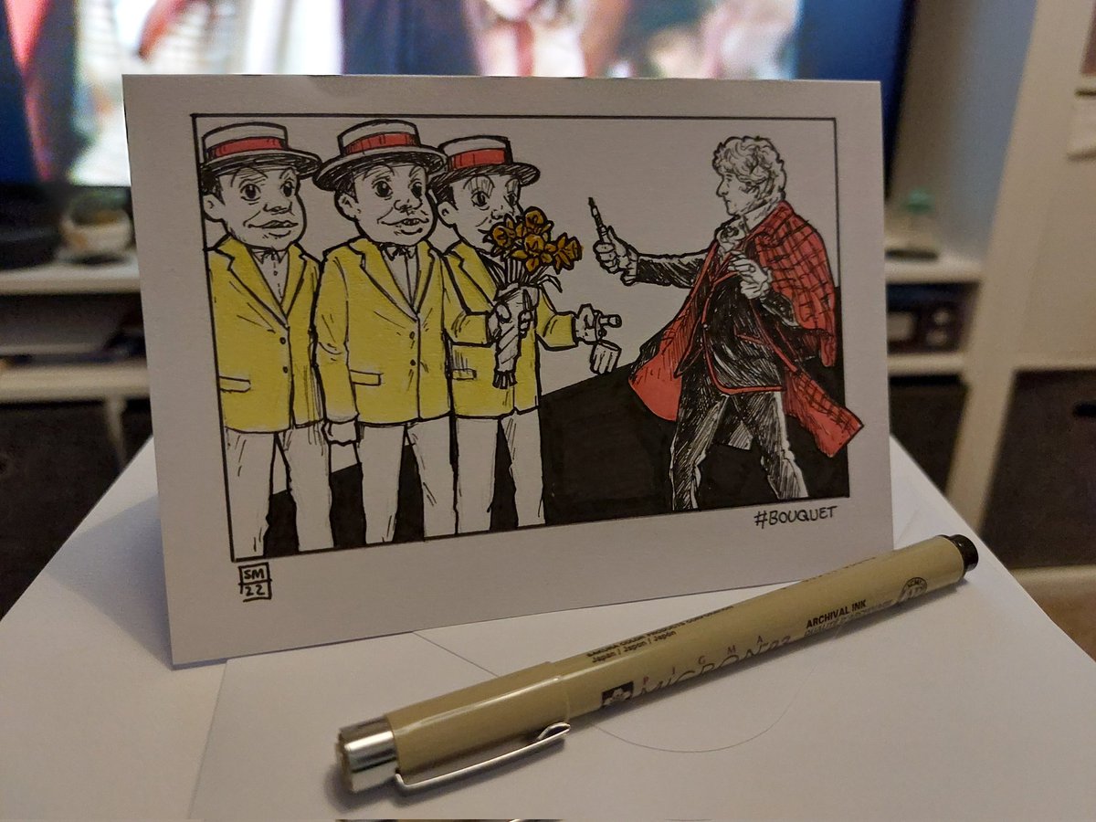 Day 6 of #Inktober2022 The word prompt today was #Bouquet. So here is the #3rdDoctor facing down a terrifying gift! Done in a bit of a rush to try to beat midnight but...shrug 🤗 #DoctorWho #JonPertwee #Inktober #InkArt #InkDoodle #TerrorOfTheAutons