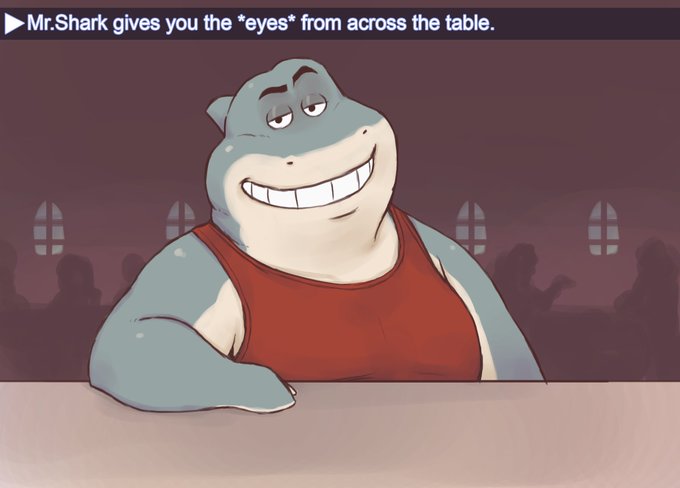 Maybe I can post up some of the art from my [fan art folder.] How about some: "Mr.Shark if he was in a dating sim" for the night. #MrShark #TheBadGuys #fanart #BearBoyJW #JonathanWedge