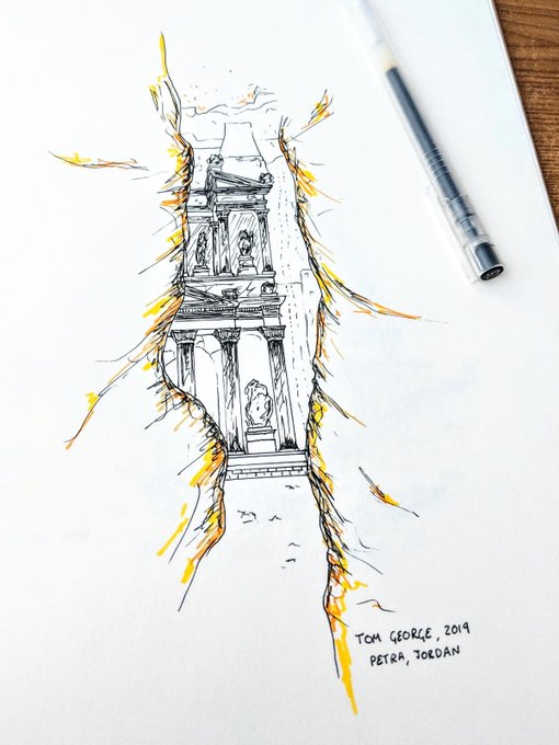 #inktober52 Prompt 18 - World (Part one of this piece) #inktober #inktober2022 #inktoberallyearlong #ink #art #sketch #doodle #creative #artist #inktober52world #illustration #drawing #inkart #jordantourism #jordan #petra #petrajordan #travel #middleeast #treasury #alkhazneh