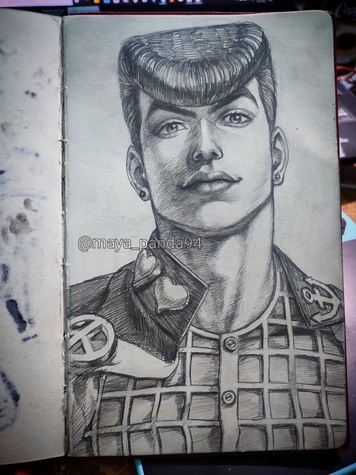 I still taking care of my lil sis and I didn't bring any copic so I just back to pencil drawing again. 🥲👍 #josukeHigashikata