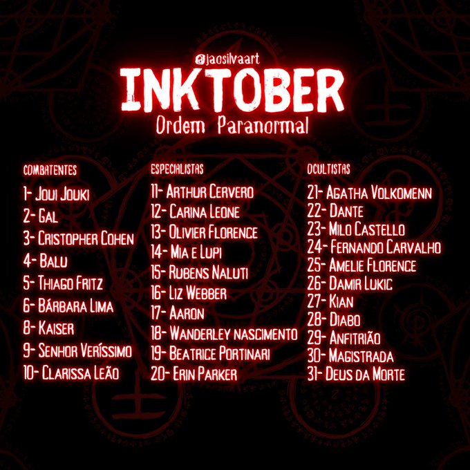 cheguei extremamente atrasad mas ta ai os 3 primeiros dias!! #OrdemParanormal #ordemparanormalfanart #inktober2022 #Inktober #joui #gal #christophercohen #chris twitter.com/jaosilvart/s…