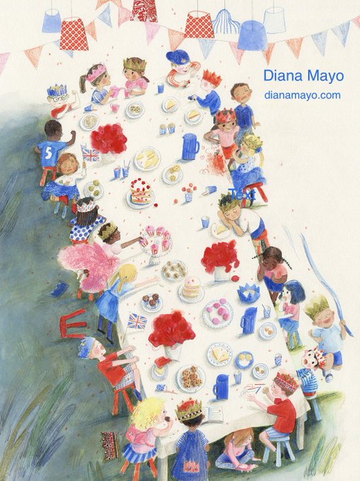 Happy birthday to #KidLitArtPostcard! I’m Diana, an illustrator enjoying creating for picture books. Represented by @ArtistPartners #illustration #Jubilee #JubileeWeekend #platinumjubilee2022