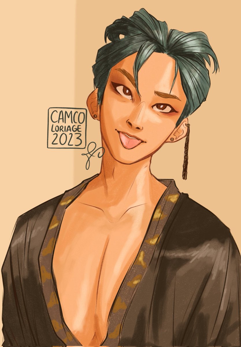 A friend of line reminded me of that great (unfinished) fic I wrote based on favorite boys so I had to draw my favorite boy (and protagonist) 👹🐲🌘🗡 #choicecreation #fanart #junhee #Procreate