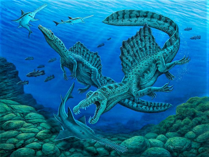 Just added Phil Wilson's fantastic "Spinosaurus & Onchopristis" to the Kronos Rising Paleo Gallery. Visit the gallery at kronosrising.com/paleo-gallery/ #jurassicworlddominion #jurassicworld #jurassicpark #jurassicpark3 #jurassicworldevolution #dinosaur #paleo #paleoart #paleoartist
