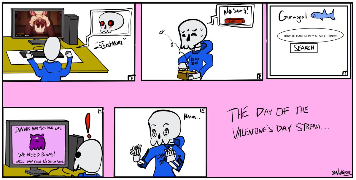 Welcome back, Calli! And Happy Valentine’s Day! Thank you for your awesome stream. We are always proud of you. Of course, J U S T M O R I . #JustMori #callillust #moricalliope