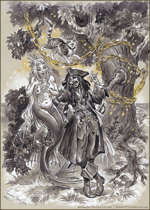 У лукоморья. Картинки «Пираты Карибского моря». #CaptainJackSparrow #JohnnyDepp #PiratesoftheCaribbean #pirates #potc #JackSparrow #art #illustration #draw #drawing #mermaid #mermaids #PiratesLife #ArtForJohnnyDepp #justiceforjohnnydepp #MerMay #marmay2022 #Лукоморье #Пушкин