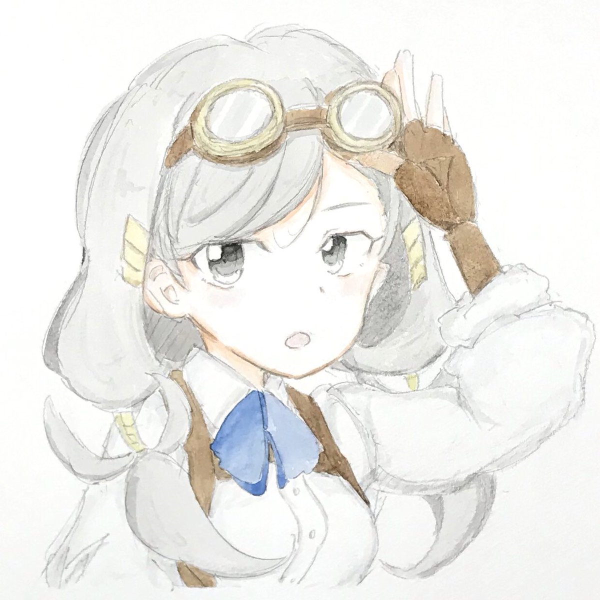 【#KΓTΓBUKL卓_謝恩】 作品名:コトブキ飛行隊のケイト 使用ツール:透明水彩 フィギュアーツZEROのケイトちゃんがゴーグルを手で押さえてるのがめっちゃ可愛いのでそんな感じで描いてみました⤴︎ 残りのフィギュアーツZERO…発売お待ちしておりま〜す! twipla.jp/events/491655 #KΓTΓBUKL卓 #コトブキ