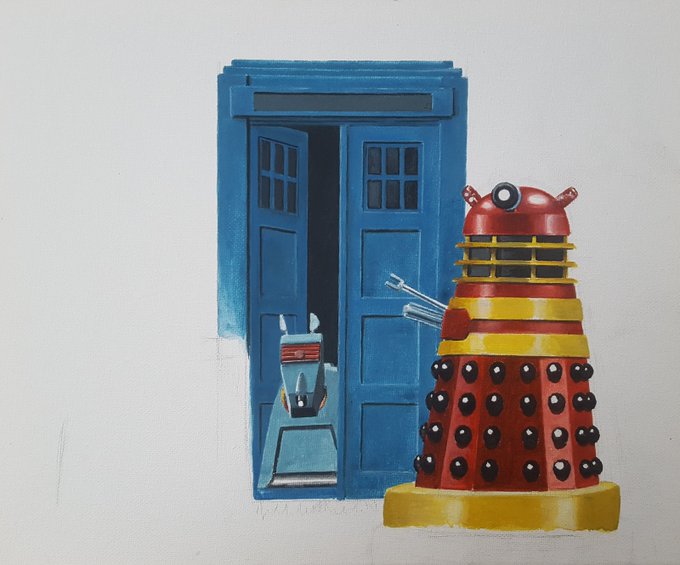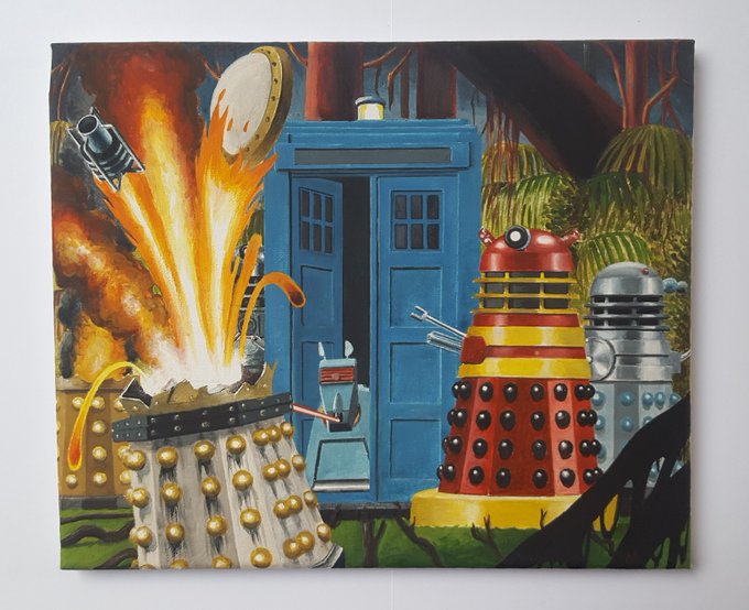 #DoctorWho #FanArtFriday 'K9's Special Mission part 1' 🙂 #K9 #Daleks #TARDIS #canvas #illustration #art