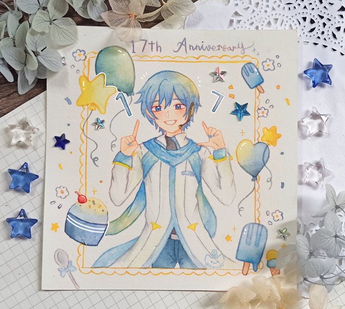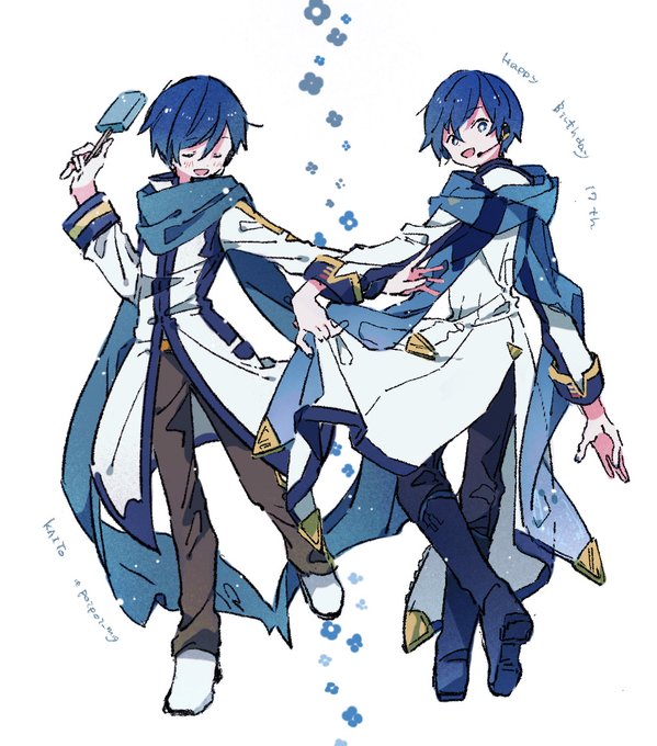 KAITO兄さんおめでとうございます!今年もたくさん歌を歌ってください…!(過去絵で申し訳ないけど、どれも気合入れて描いたのでっ…) #KAITOお誕生会2023 #KAITO誕生祭2023 #KAITO17th