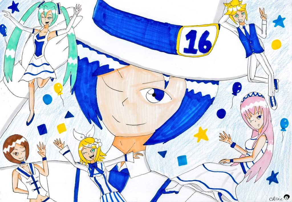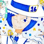 お誕生日イラストの背景ないやつでクリプトン歴のお祝い 結構頑張って細かく描いたので見て貰えたら嬉しいな♪(*‘ω‘ ≡ ‘ω‘*)♪ #KAITO16th #KAITO16周年 #KAITO誕生祭2022 #KAITOお誕生会2022