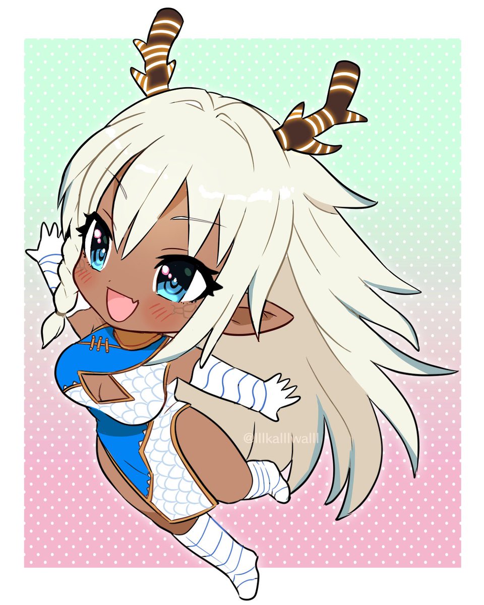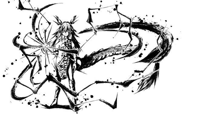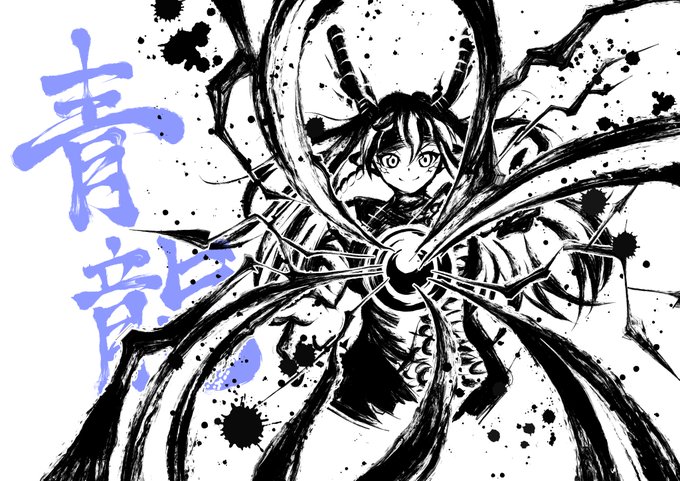 四方神姫ファンアート3枚目青龍さん描いてみました 朱雀さんと白虎の姐さん同様3種類です これがあるイラストもちまちま見たので宝玉と尻尾付けてみましたー #四方神姫 #画龍展青 #KAMIZONからの届け物
