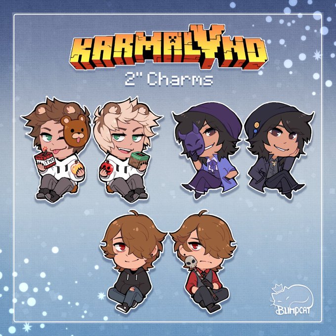 ⭐ New Pre-Orders Open!! • KarmalandV Charms/Stickers • 2" Rubius, Quackity, & Luzu • 2.5" Quackity & Titi • Pre-orders expected to ship out in March! 🌙 Shop link in reply :] #KarmalandV #Karmalart