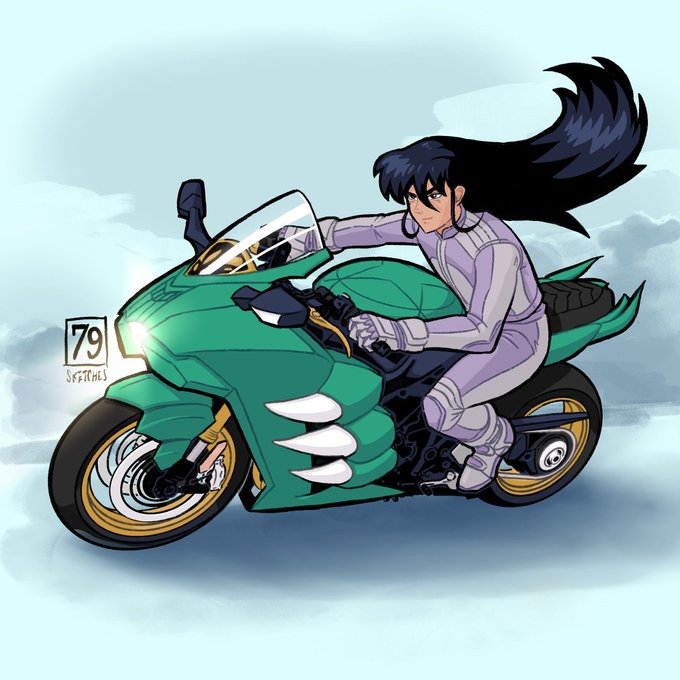 Shiryy at full throttle with his Dragon motorcycle #SaintSeiya #dragonshiryu #dragon #bronzecloth #bronzesaints #dragoncloth #Kawasaki #kawasakiH2 #motorcycles #illustration