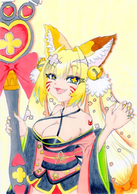 パイにゃん ビーストモード サクラフブキドレス(紅) #KEMOMIMI! #コピック #パイン(ボンバーガール) #パイにゃん #チェイスチェイスジョーカーズ #アナログイラスト pixiv.net/artworks/10753…