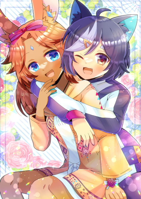 Ayeshalala(@Ayesha_bnny)さんのFF14キャラとOCを描かせて頂きました!リクエスト有難うございます🌸 I drew FF14 character and OC by Ayeshalala Thank you for your request! skeb.jp/@kou_hiyoyo #FF14 #kemomimi
