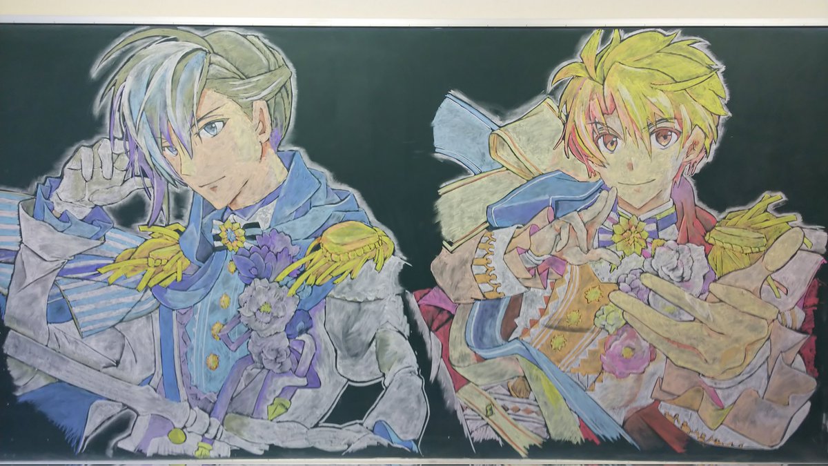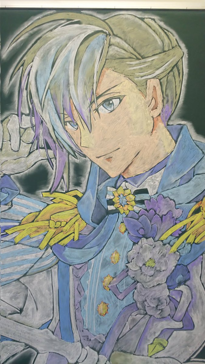 アイナナ黒板アート第4段😉 4月1日はアイドリッシュセブンの四葉環君の誕生日ということで描かせていただきました😋 CVはマクロスΔでもお馴染みのKENNさんですね~😍 5th Anniv.の衣装は白が多いので、メリハリつけるのに苦労します…😢 次は壮五君でいいですか? #四葉環生誕祭2022 #KENN #MEZZO