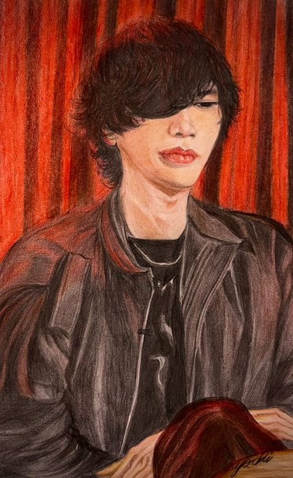何度観ても米津さんがツッコミ入れる シーンではニヤニヤが止まらない こんな表情も好きで描いてみました スクショしたのでよく見えないとこは 想像で描いてます。背景とか服😅 #KICKBACK対談 #米津さんFA #色鉛筆画 #空想ライブチケット当たりますように