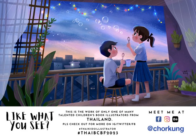 Hello! I'm Chorkung, a children's book illustrator and author based in Thailand. I like to draw animals and tell stories. 🌱Behance: behance.net/chorkung #ThaiKidsIllustrator #thaibcbf2023 #childrensbooks #childrenbookillustration #kids #books #digitalart #digitalartists