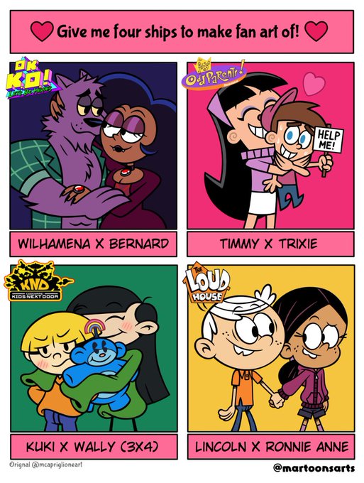 Give Me Four Shipments Fanart ❤️❤️ I was hoping to have it done yesterday but better now than never, so... Happy Late Valentine's Day Everyone 💘 #okkoletsbeheroes #FairlyOddparents #kidsnextdoor #theloudhouse #TheCasagrandes #shipments #fanart #cartoon #ValentinesDay