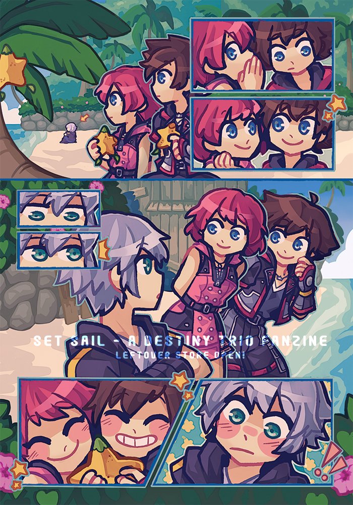 my pages for @destinytriozine !🌺 a wonderful zine to have been in!! its brimming with love for our destiny bebis 🥹 thank you for having me! if you'd like a copy, now's your chance to yoink it! ★ check out the leftover store below ↓↓ #KingdomHearts