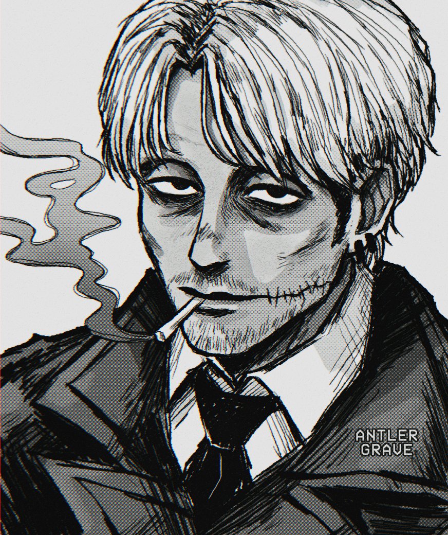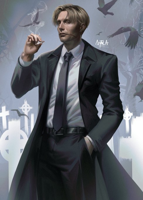 Mads Mikkelsen as Kishibe from chainsaw man #kishibe #MadsMikkelsen #chainsawman #fanart #anime #manga #illustration #painting