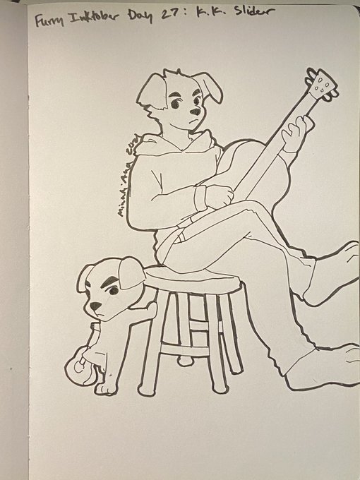 Furry Inktober Day 27/28: K.K. Slider and Gamer #inktober #inktober2021 #inktober2021day27 #inktober2021day28 #furry #furryart #furryartwork #kkslider #AnimalCrossing #gamer #ケモノ #イラスト