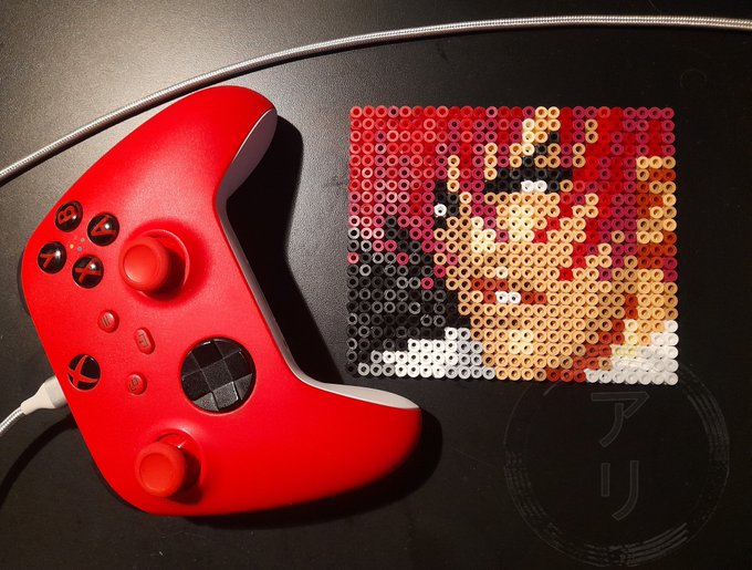 I've made an Iori Yagami bead. He's my favorite character from the King of Fighters series 😘💕 By the way, I'm also accepting bead commissions 👋😆✨ #KOF98 #TheKingOfFighters #八神庵 #アイロンビーズ #pixelart #artist #ArtistOnTwitter #opencommissions