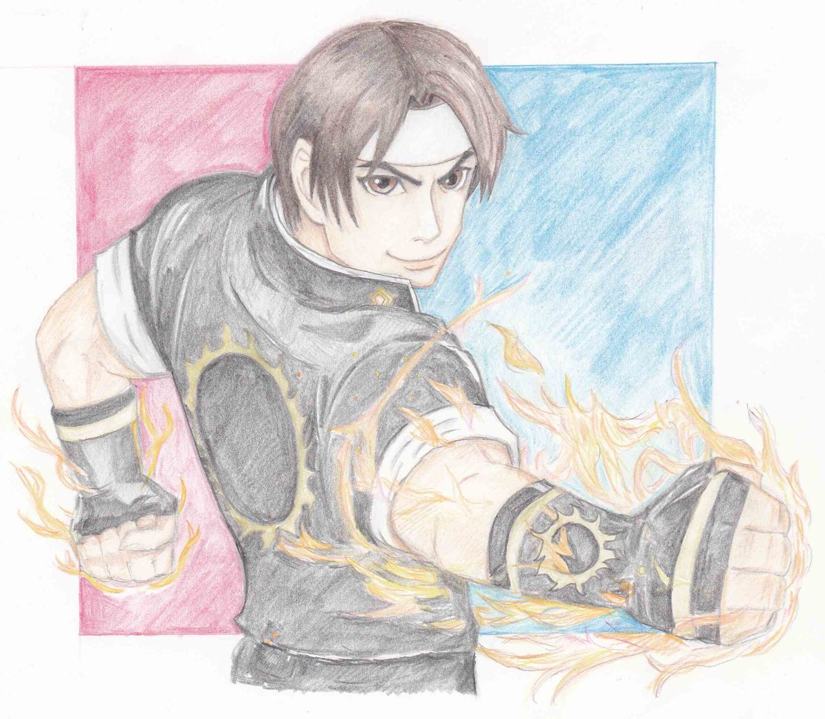 TLで教祖のラッキー解説を見て。聞きながらつい描いてしもうた😀(3時間前に「柴舟描きてー」ってつぶやいたのはなんだったんだ?🤔🤔🤔) #ラッキー・グローバー #LuckyGlauber #kof #kof98 #格ゲーキャラ描こうぜ