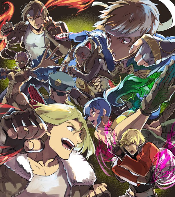 KOF XVより 🎉イスラと歴代主役達@祝リリース一周年記念🎉です。 今回は主役たちの「カッコいい」コンセプトで描きました。 どのキャラも「カッコいい」んですよ。時代をまたいでも「カッコいい」ってすごいことだと思います👊 #KOFXVイラストコンテスト #格ゲーキャラ描こうぜ